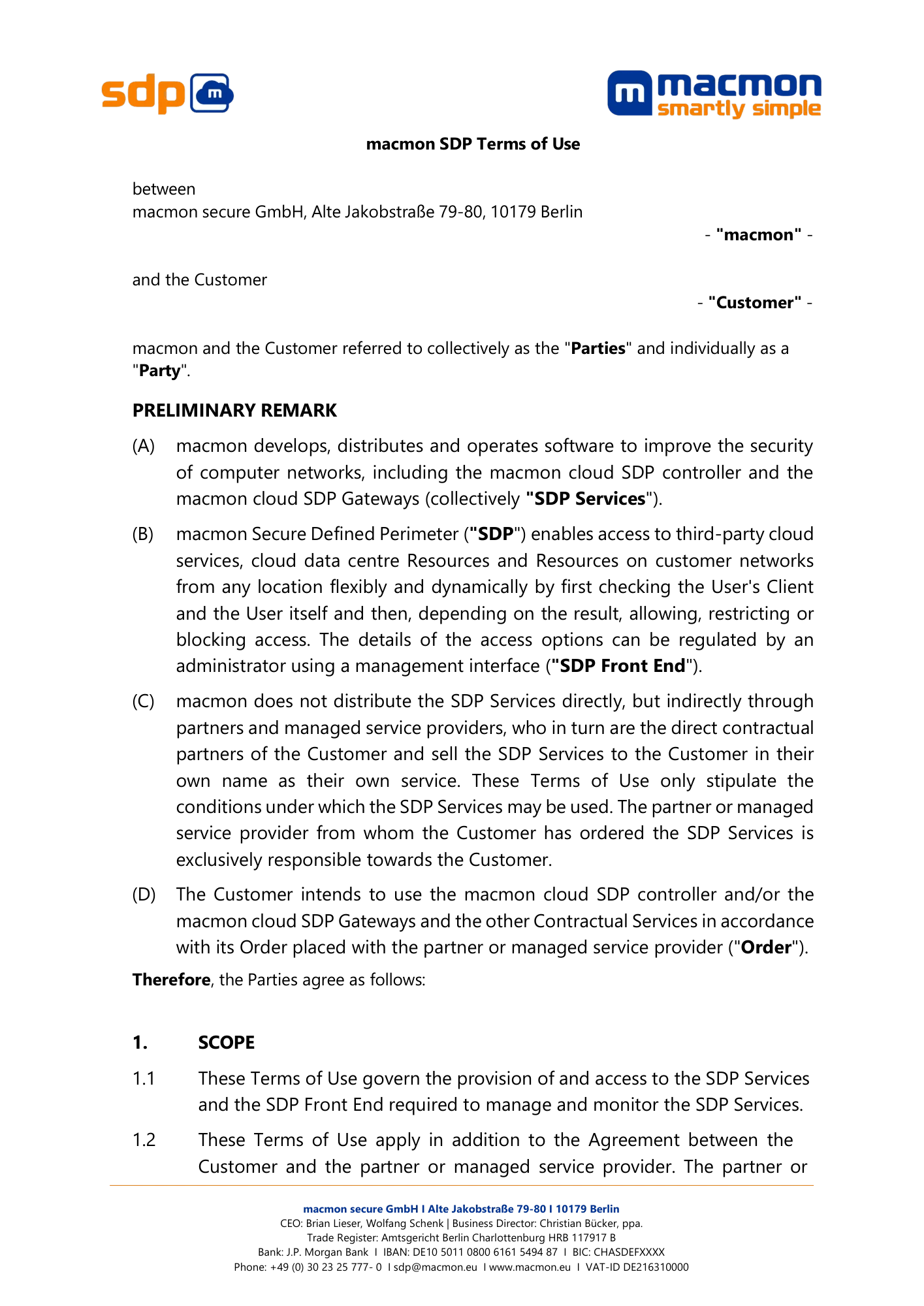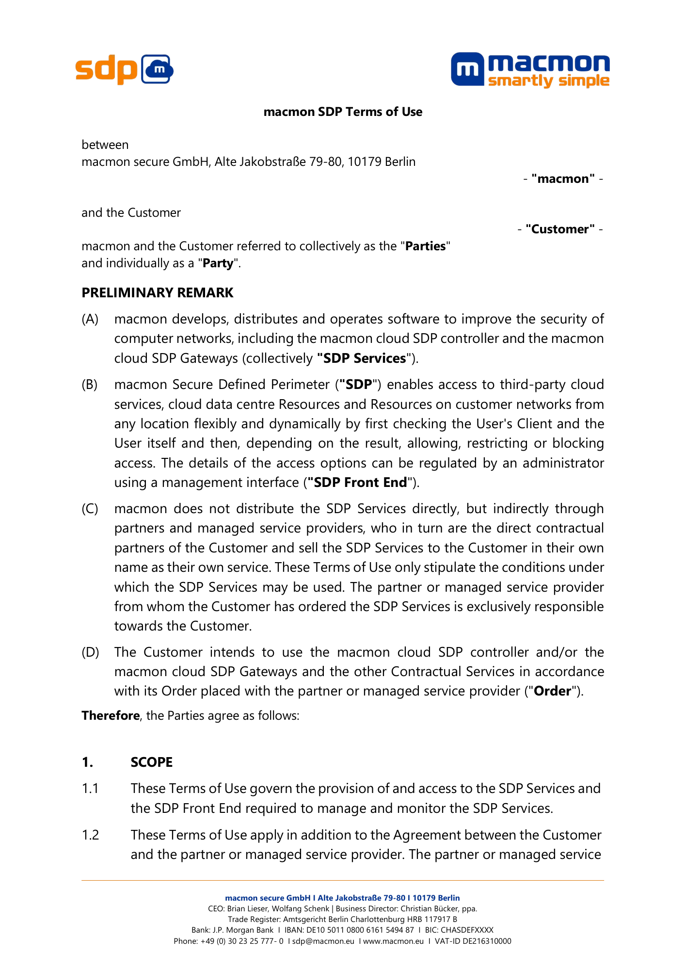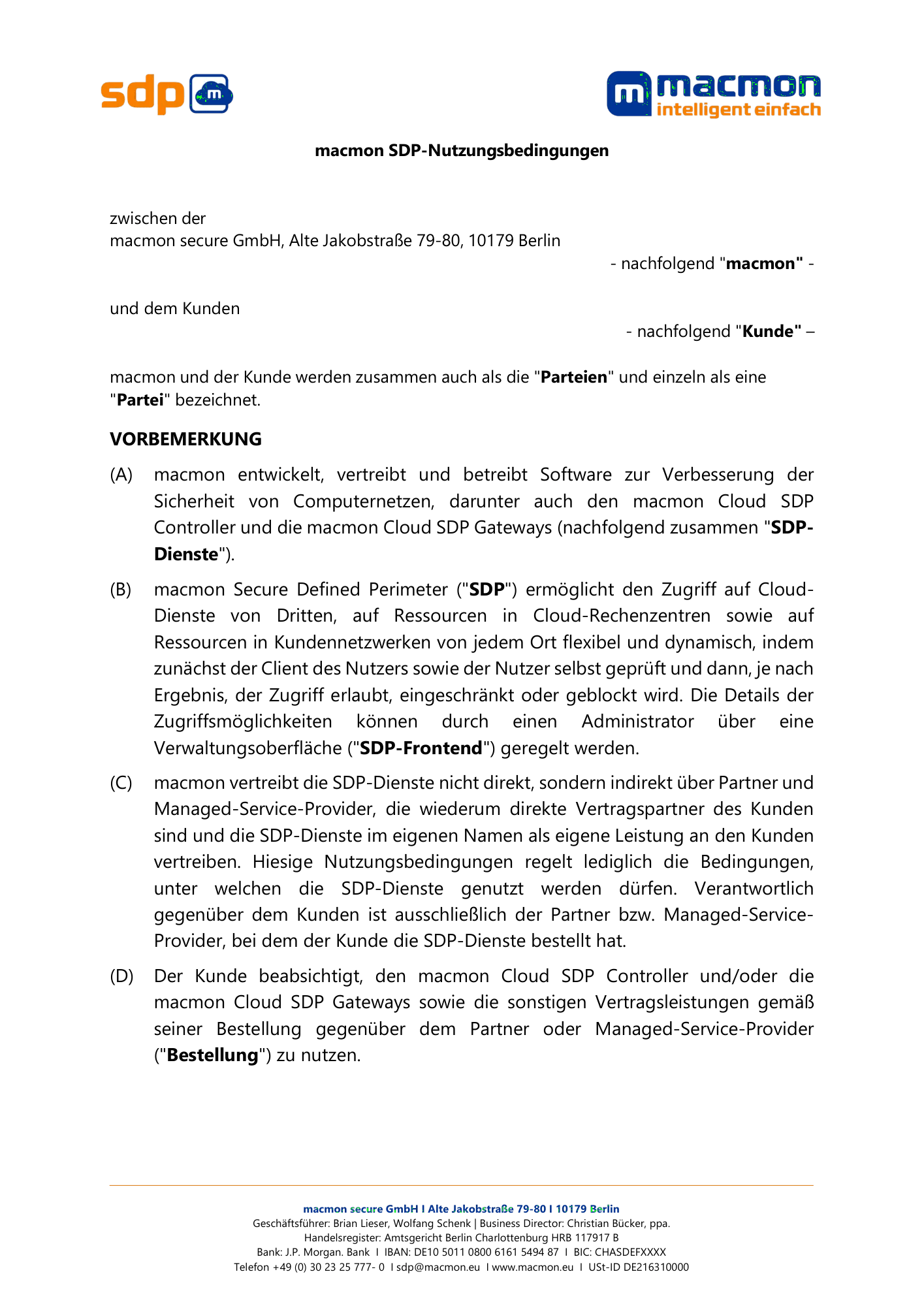 macmon SDP Terms of Use and Data Protection