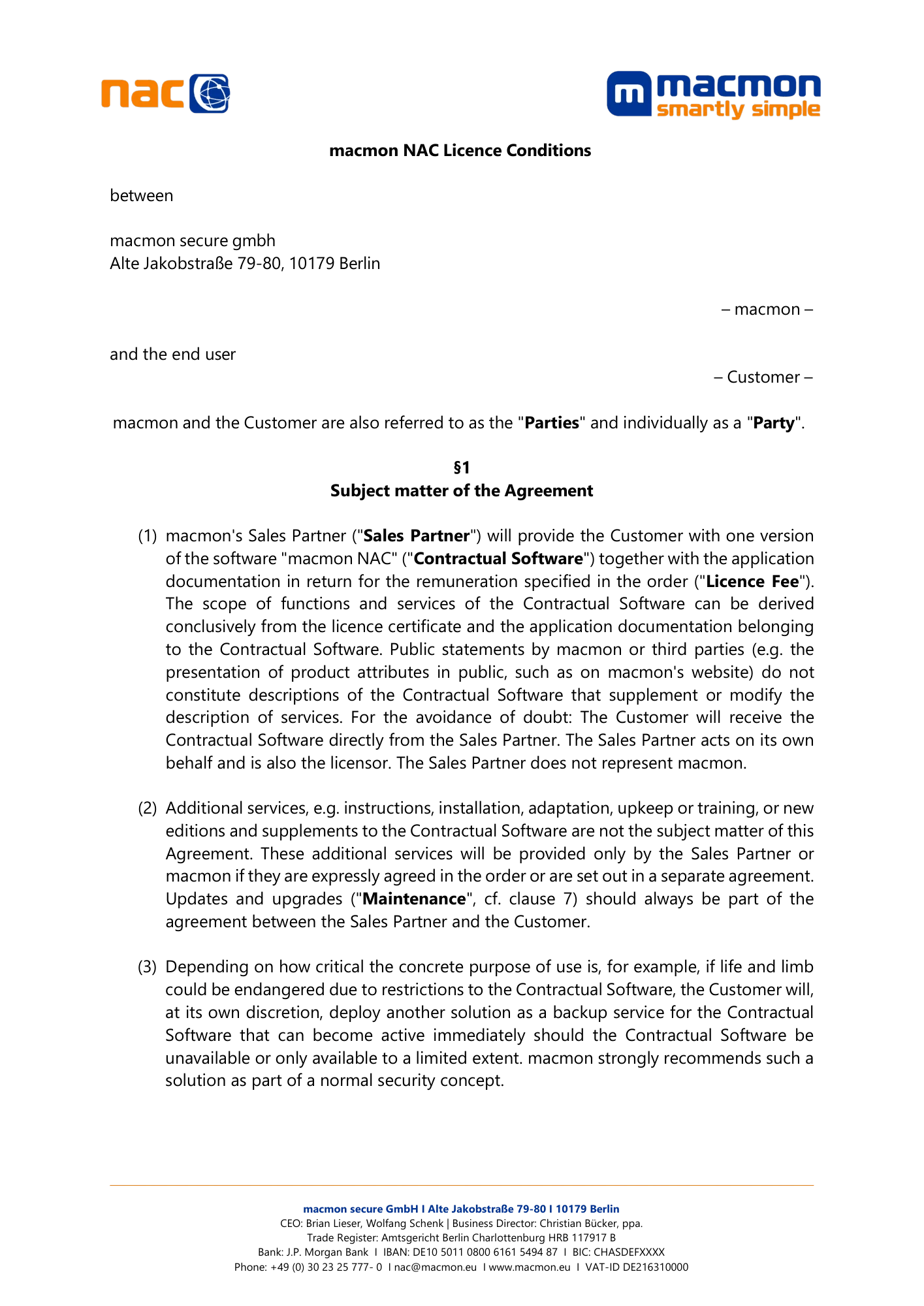 macmon NAC Licence Conditions